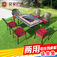 户外桌椅电烧烤炉桌椅套件铸铝铁艺庭院阳台露天花园室外欧式家具