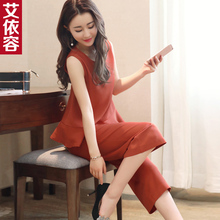2017夏装阔腿裤套装女夏时尚九分裤两件套修身气质名媛女装新款潮