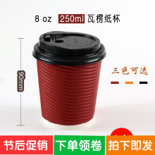 包邮一次性加厚纸杯咖啡奶茶纸杯热饮杯 瓦楞纸杯8盎司带盖100套
