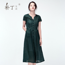 补丁2017夏季女韩版长款纯色绿苎麻多扣连衣裙女送吊带FL2172/172
