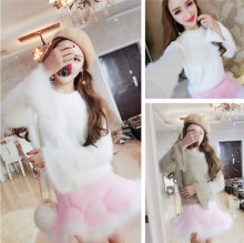 模特实拍~~ 韩版时尚圆领套头喇叭袖百搭水貂毛甜美公主风毛衣