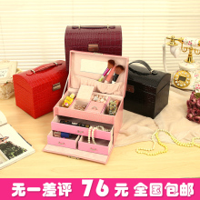 欧式首饰盒公主带镜锁化妆盒饰品收纳盒珠宝盒多层生日礼物结婚女