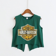 2017夏季新韩版原宿风 潮流印花后背开叉宽松高腰短款无袖背心T恤
