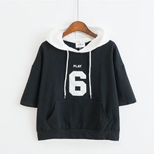 2017春夏韩版休闲学院bf风半袖贴皮6号宽松连帽短袖T恤女学生帽衫