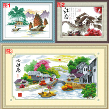 新款品居十字绣小幅忆江南渔舟水乡风景帆船画一帆风顺线绣印花