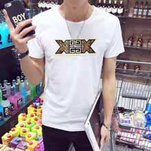 短袖T恤男士圆领修身半袖大码夏季男装衣服打底衫黑白体恤上衣潮
