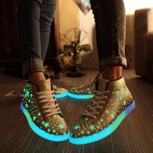 秋冬情侣鞋荧光鞋时尚高帮鞋男士女士鞋子韩版潮流夜光鞋个性板鞋