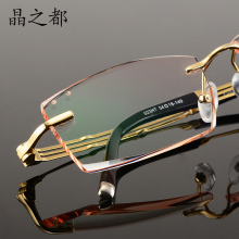 私人定制新款无框镜水晶 钻石切边工艺眼镜 男钛宽边镜框 大脸方