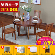 青岛一木 胡桃木新中式餐桌客厅古典圆形饭桌餐台 实木餐桌椅组合
