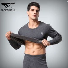 七匹狼保暖内衣男士加厚加绒套装爸爸老人V领青年秋衣秋裤棉毛衫