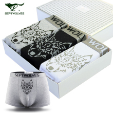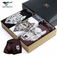 七匹狼男士内裤男平角裤纯棉狂野夜光狼青年夏季全棉四角裤礼盒装