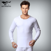 七匹狼纯白厚男士内衣纯棉秋衣秋裤紧身薄款保暖套装打底全棉毛衫