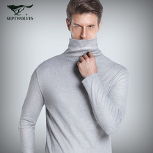七匹狼男士内衣纯棉秋衣中高领单件上衣长袖打底薄款保暖中老年人