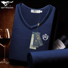 七匹狼男士单件上衣纯棉V领保暖内衣青年厚贴身紧身秋衣中年打底