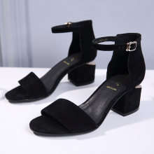 2017新款粗跟凉鞋一字扣罗马凉鞋女夏百搭时尚中跟一字带真皮女鞋