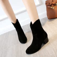 逸诗晴秋冬季磨砂真皮短靴英伦侧拉链高跟圆头裸靴羊皮粗跟女靴子