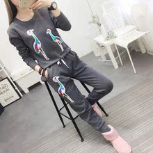 2016韩版新款 时尚亮片刺绣 加绒加厚休闲运动套装女,穿出潮流!