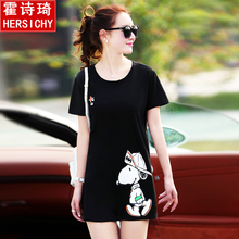 夏季天半袖上衣服女中长款短袖t恤女士2017新款韩版宽松时尚百搭