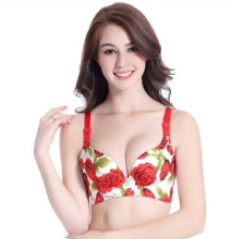 2016新款一片式无痕无钢圈聚拢印花内衣文胸 玫瑰花四排扣胸罩
