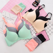 拉B女士性感一片式无痕内衣无钢圈聚拢文胸套装小胸加厚胸罩内裤