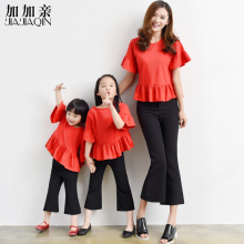 加加亲2017春装新款微喇叭裤女九分裤韩国高腰黑色大码修身女裤子