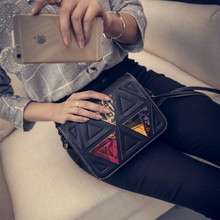 2017新款潮韩版时尚女士小方包三角撞色拼接女包简约单肩斜挎小包