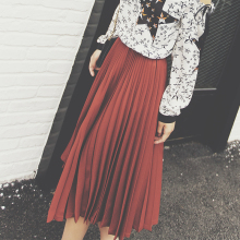 2017夏季新款女装a字裙雪纺长裙百褶印花裙子夏中长款半身裙夏装