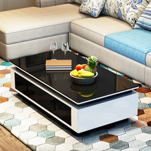 艾格森钢化玻璃储物茶几长方形简约现代客厅组合茶桌白色烤漆茶几