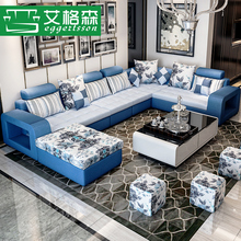艾格森 布艺沙发简约现代地中海小客厅户型套装组合布沙发可拆洗