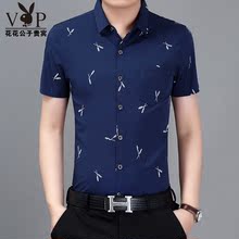 花花公子贵宾短袖衬衫男装中青年男士印花衬衣夏季休闲男装短袖