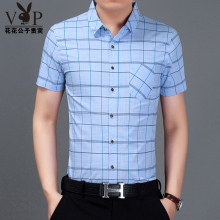 花花公子贵宾中青年男士短袖衬衫薄款商务休闲纯棉质半袖免烫衬衣