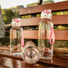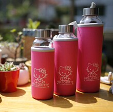 hello kitty时尚玻璃水杯子 创意耐热防漏水瓶 便携女士泡茶杯子