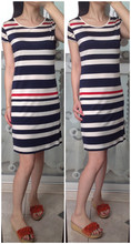 自留大爱100%真丝针织海军风粗细相间显瘦横条纹短袖连衣裙ZN05