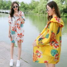防晒衣女2017夏新款宽松透气中长款沙滩防晒服连帽花色时尚薄外套