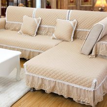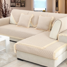 好安家 高档四季通用素色米黄白绗缝布艺沙发垫坐垫 防滑沙发巾套