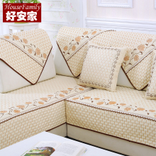 好安家 四季款编织沙发垫坐垫 欧式透气高档素色布艺防滑沙发巾套