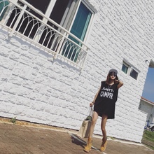 无袖背心T恤女2017夏季新款欧美风字母中长款宽松T恤裙外穿打底衫