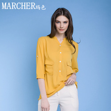 MARCHER夏立领通勤显瘦宽松时尚小衫七分袖雪纺衫衬衫