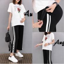 新款黑色大码孕妇裤夏季薄款开叉喇叭裤孕妇休闲运动裤托腹九分裤
