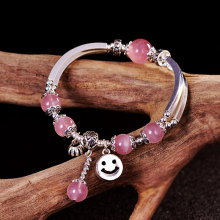 925银粉水晶手链女天然粉晶手链单圈时尚甜美饰品女生日礼物
