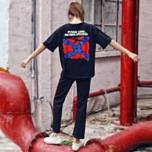 短袖休闲运动装套装女夏2017新款时尚印花镂空破洞学生短裤两件套