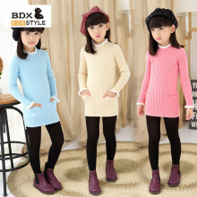 女童毛衣2016秋冬加厚套头中长款中大童圆领打底衫儿童针织衫童装