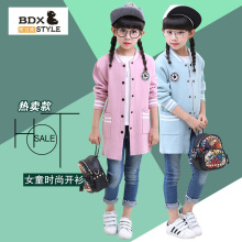 女童开衫外套新款儿童秋装毛衣针织衫中大童上衣棒球服长款羊毛衫