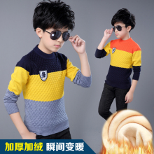 2016秋冬季新款儿童毛衣中大童圆领打底衫加绒加厚男童羊毛针织衫