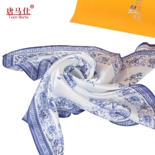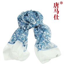 唐马仕青花桑蚕丝真丝长丝巾中国特色工艺礼品送老外送女友礼物