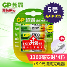 gp超霸5号电池5号充电电池1300毫安4节送电池盒保证原装正品五号