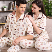夏季高档情侣睡衣纯棉韩式薄款短袖长裤男式加大码全棉家居服套装