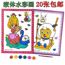水彩画 儿童填色画涂色画 DIY颜料画 带笔和6瓶颜料 满20套包邮