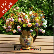 欧式田园 仿真花假花装饰花“客厅阳台卧室餐厅”欧式烛光茶玫瑰