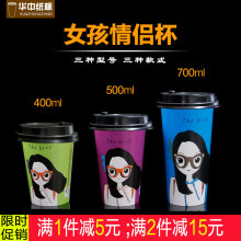 一次性奶茶纸杯400毫升500ml加厚环保饮料果汁可爱奶茶店带盖杯子
